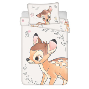 Sanftheit, Zärtlichkeit und Poesie treffen aufeinander mit diesem bezaubernden Beige Bambi Bettwäsche-Set 100x135 cm, das speziell dafür entworfen wurde, die Kleinen in einen Kokon aus Komfort zu hüllen. Bestehend aus einem Bettbezug 100 x 135 cm und einem Kopfkissenbezug 40 x 60 cm, passt es perfekt auf Babybetten und begleitet die Nächte mit einem Hauch von natürlicher Magie.