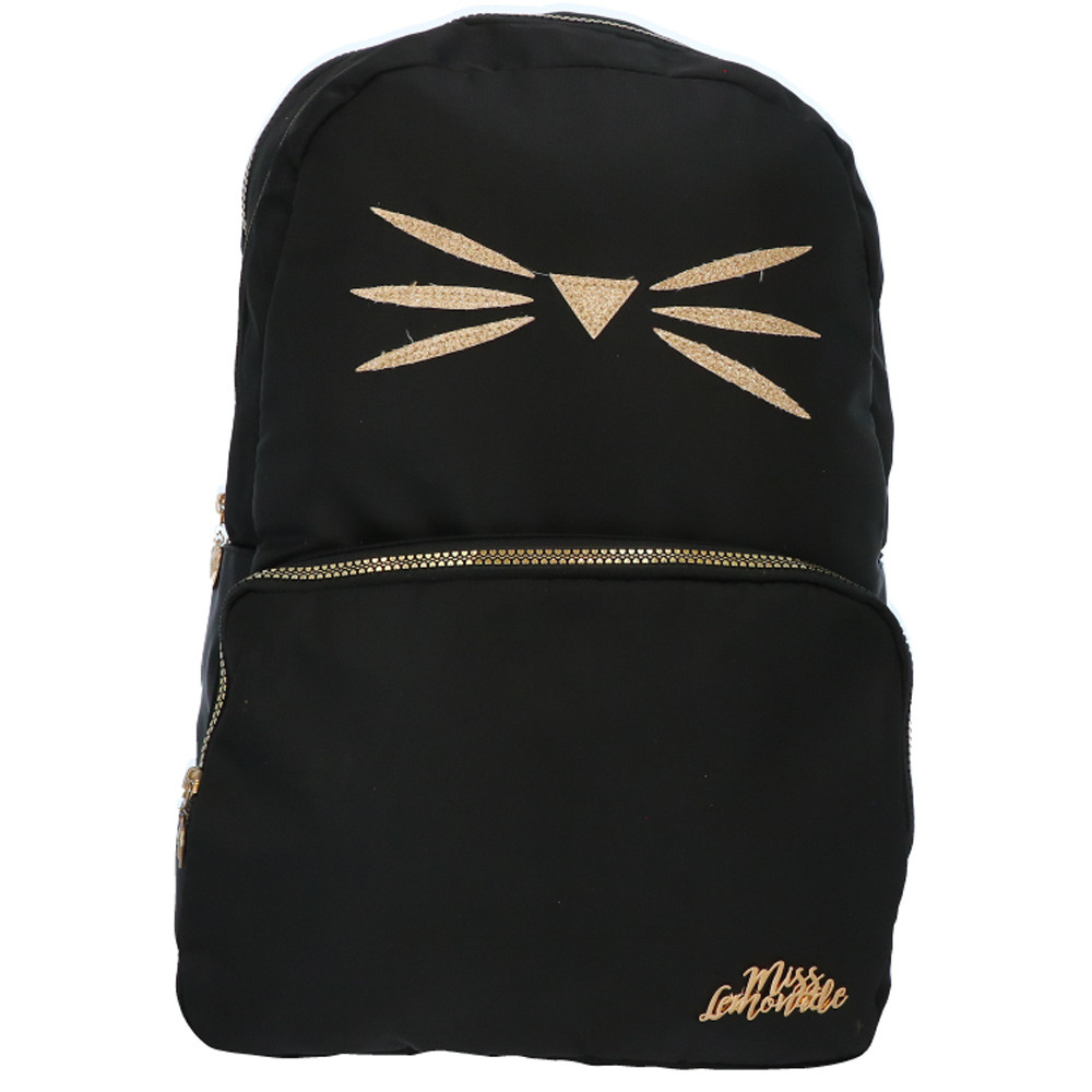 Der Rucksack Miss Lemonade Chat 45 cm besticht durch sein elegantes und originelles Aussehen, perfekt für junge Mädchen, die auf der Suche nach Stil im Gymnasium oder in der Oberstufe sind. Ganz in Schwarz mit schimmernden goldenen Akzenten, zeigt er ein stilisiertes Katzenantlitz mit glitzernden Linien auf der oberen Seite, das eine raffinierte, aber nicht zu kindliche Fantasienote verleiht. Es ist ein ebenso trendiges wie funktionelles Accessoire.