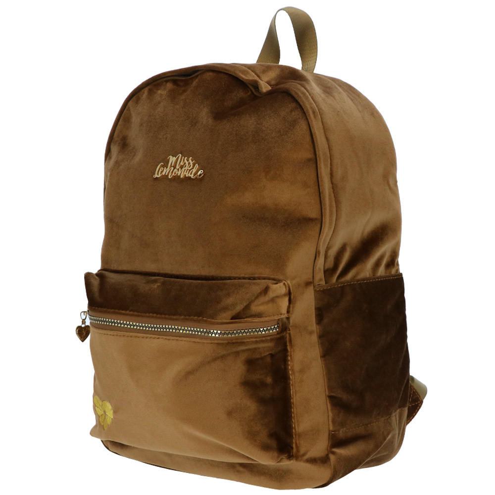 Gefertigt aus hochwertigen Materialien, setzt dieser Rucksack genauso auf Langlebigkeit wie auf Eleganz. Die weiche Samtoberfläche bietet ein luxuriöses Gefühl, und die goldenen Details — metallischer Reißverschluss, gesticktes Miss Lemonade-Logo und kleiner Herzanhänger — verleihen eine wertvolle und feminine Note.