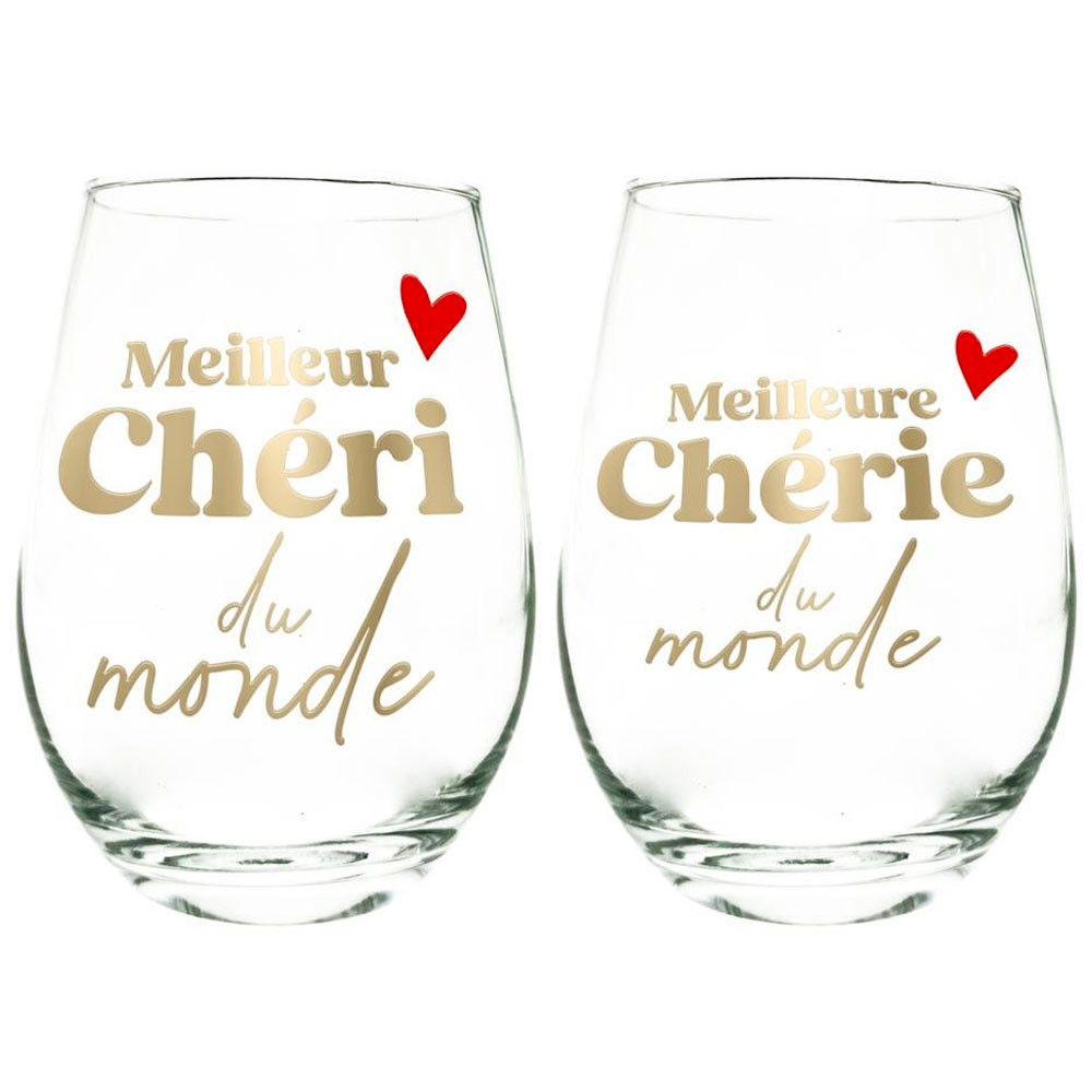 Jedes Glas trägt stolz eine goldene Inschrift, die sofort ein Lächeln auf die Lippen zaubert: Eines verkündet „Bester Schatz der Welt“, während das andere liebevoll „Beste Schatzi der Welt“ antwortet. Diese beiden Aussagen ergänzen sich wunderbar, genau wie die beiden Personen, die sie teilen. Das Gold, sorgfältig aufgetragen, fängt das Licht fein ein und verleiht dem Ganzen einen sowohl festlichen als auch raffinierten Eindruck. Ein kleines rotes Herz, zart neben dem Text platziert, unterstreicht die liebevolle Absicht des Geschenks. Das Ganze fügt sich in eine fröhliche und romantische Ästhetik ein, während es modern bleibt.