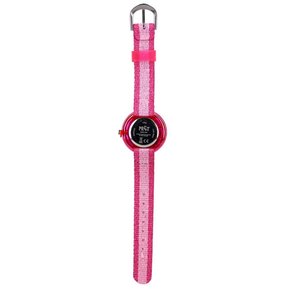 Das 20 cm lange Textilarmband, das sowohl flexibel als auch widerstandsfähig ist, passt sich dank seines klassischen Schnallenverschlusses an alle Handgelenkgrößen an. Es ist bequem und angenehm, den ganzen Tag zu tragen, und besteht aus zwei schimmernden Rosatönen, die dem Ganzen eine fantasievolle Note verleihen. Der Gehäuseboden aus Edelstahl garantiert eine gute Haltbarkeit und optimalen Widerstand gegen Abnutzung.