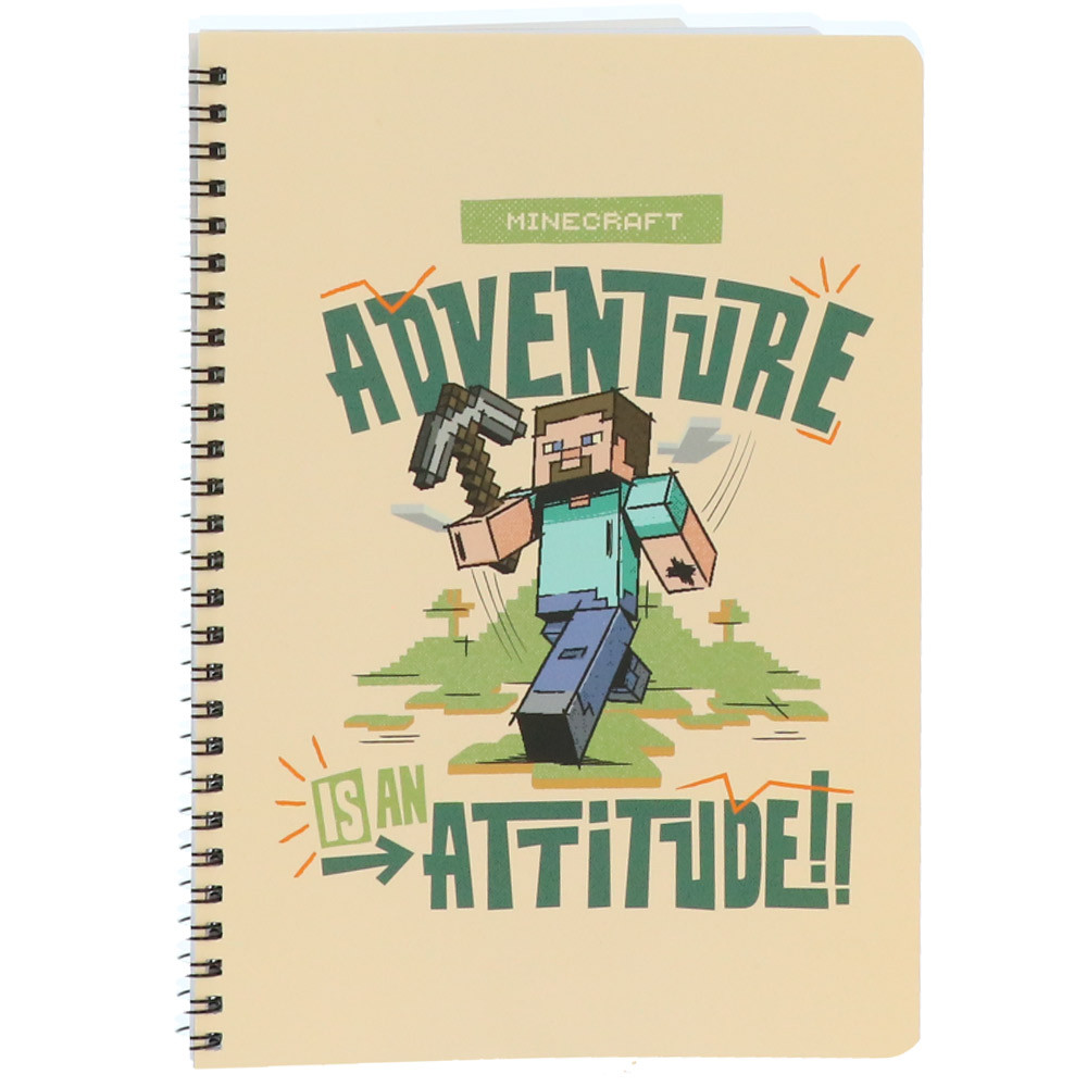 Dieses Spiralheft Minecraft Abenteuer 24 cm ist der ideale Begleiter für junge Fans des berühmten Videospiels, die Lernen und Leidenschaft verbinden möchten. Mit seinem lebendigen und energiegeladenen Umschlag, der Steve mit Spitzhacke in der Hand zeigt, und seinem inspirierenden Slogan "Adventure is an Attitude", bringt es einen spielerischen und motivierenden Touch in jeden Schultag.