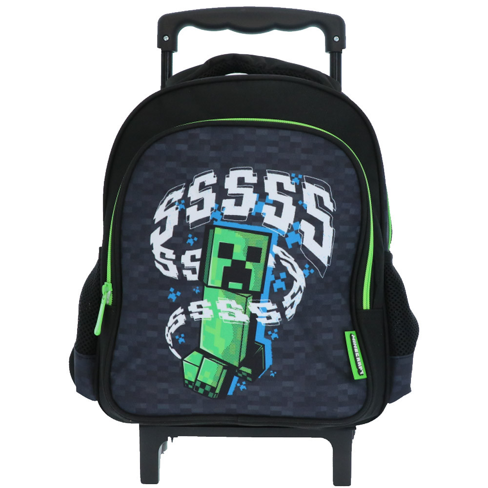 Perfekt für kleine Abenteurer in spe, der Trolley-Rucksack Minecraft Creeper 30 cm hat alles, was Kindergartenkinder begeistert! Mit seinem pixeligen und farbenfrohen Design, das den berühmten Creeper zeigt, versetzt dieser Rucksack die Kleinen in die Welt von Minecraft, sobald sie ihre ersten Schritte zur Schule machen. Auf einem strukturierten schwarzen Hintergrund erwecken die neonfarbenen grünen Akzente und die sich bewegenden "SSSS..." diesen ikonischen Charakter in einer fröhlichen, kinderfreundlichen Version zum Leben.