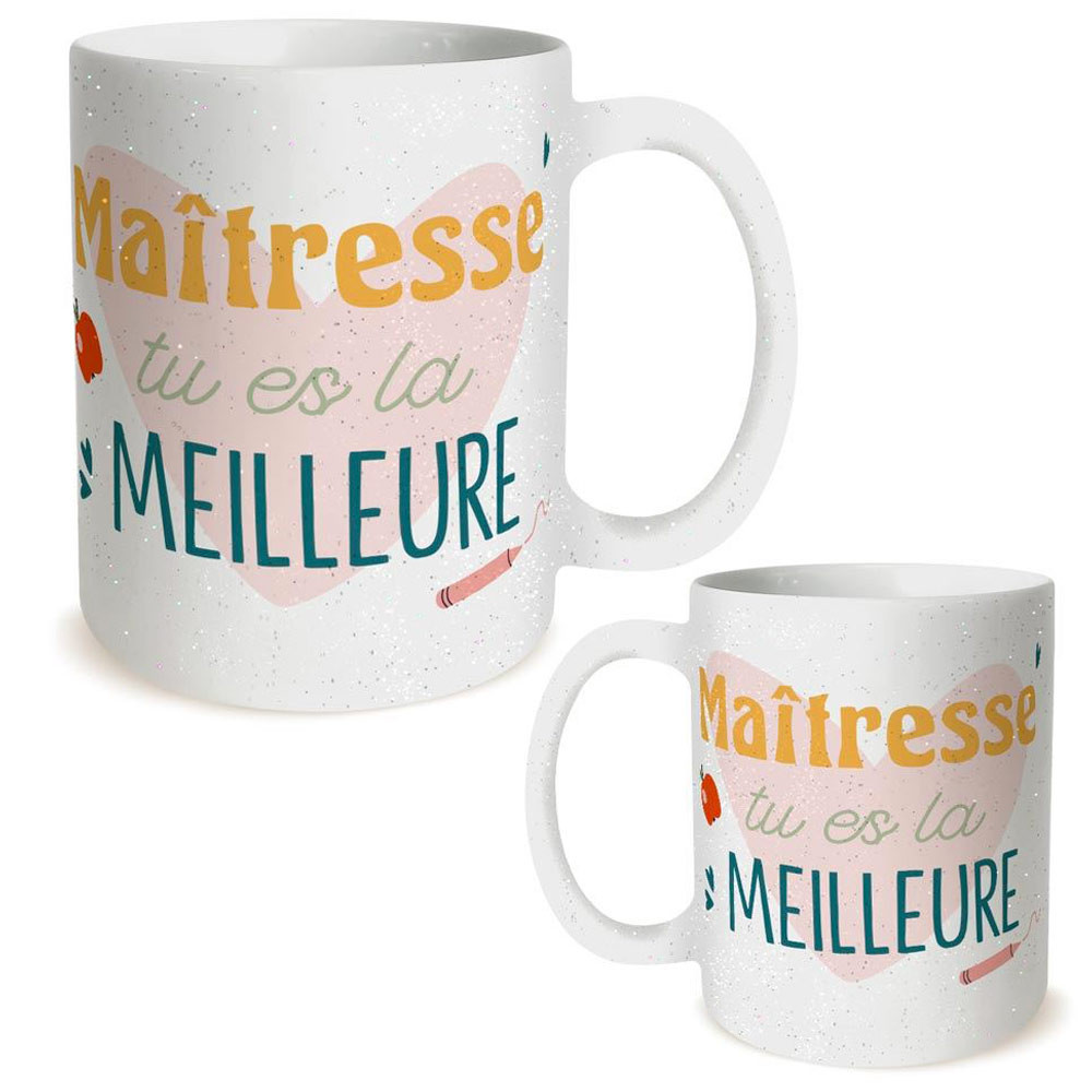 Bedanken Sie die Lehrerin mit Sanftheit und Originalität dank des Bechers Beste Lehrerin Glitzer, ein kleines Juwel voller Zärtlichkeit, um mit dem Herzen "Danke" zu sagen. Perfekt zum Schuljahresende, für eine Feier oder einfach nur, um Freude zu bereiten, feiert dieser Becher das Engagement, die Fürsorglichkeit und die Geduld derjenigen, die unsere Kinder täglich begleiten.