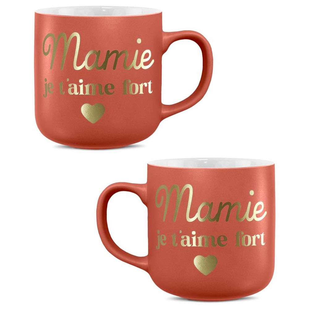 Mit seiner hübschen matten Oberfläche in einem sanften und modernen Korallenton hebt sich dieser Becher sofort von klassischen Modellen ab. Er vereint Schlichtheit, Eleganz und Emotion in einem Objekt, das ebenso dekorativ wie nützlich ist. Die glänzenden, sorgfältig auf beiden Seiten gedruckten goldenen Buchstaben heben den Kontrast zur matten Keramik hervor und verleihen dem Ganzen eine raffinierte Note. Das kleine goldene Herz am unteren Ende der Botschaft unterstreicht die gesamte Liebe, die in diesem Becher steckt.