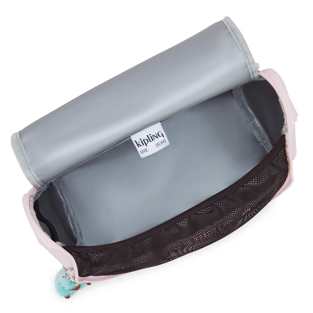 Die Innovation von Kipling liegt in dem breiten Stoffstreifen auf der Rückseite der New Kichirou Lunch bag. Dieses Gerät ermöglicht es, die Tasche entlang eines Teleskopgriffs - dem einer Schultasche oder eines Koffers - einzufädeln und sich so leicht und leicht zu bewegen, ohne Verluste zu riskieren.