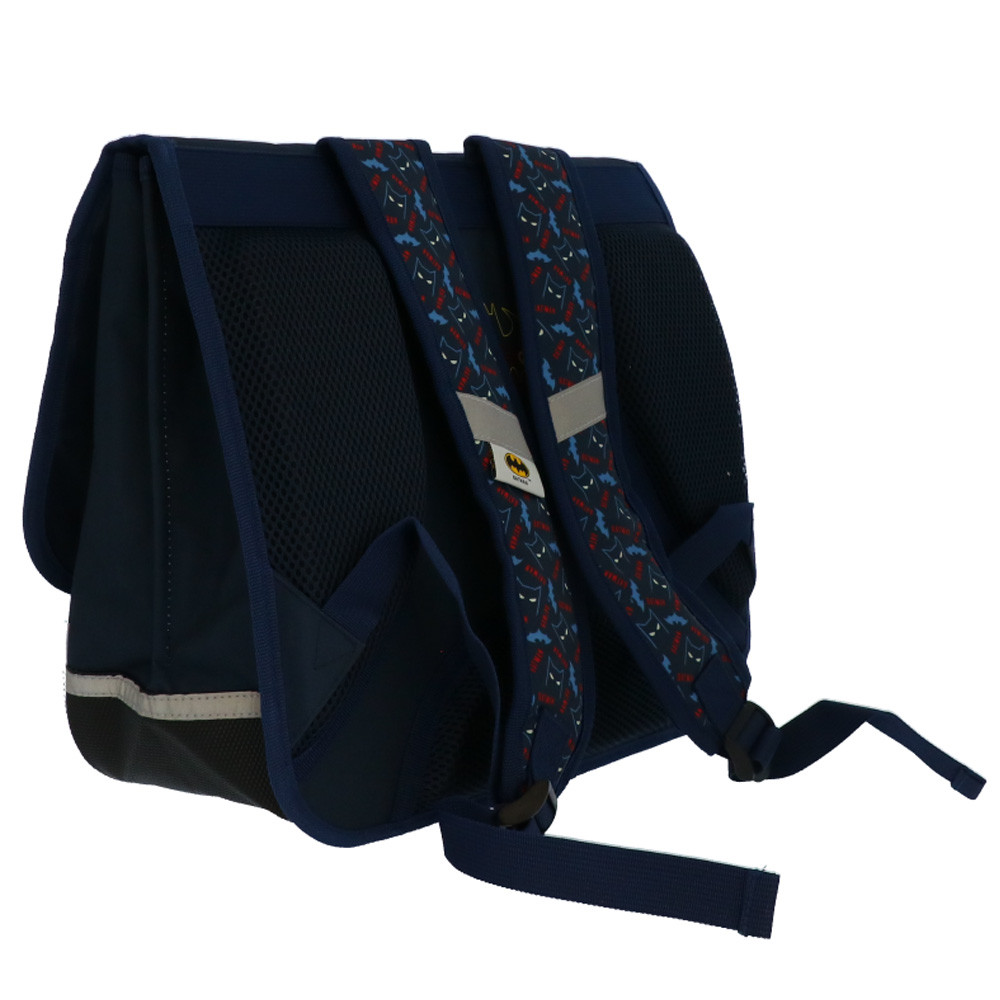 The Batman Batmobile 38 cm backpack is the perfect choice for little heroes ready to take on their first school missions. With its design inspired by the iconic Batman universe, this backpack proudly displays the famous hero's mask and his Batmobile, on a midnight blue background enhanced with touches of red and yellow. It embodies the spirit of courage, intelligence, and determination, ideal values to accompany children from first grade and the early years of primary school.