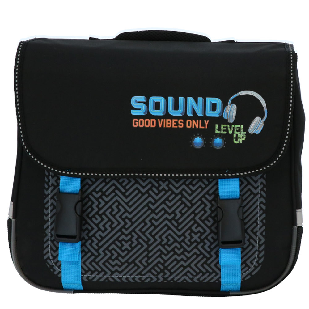 Musical ambiance and good mood guaranteed with the Sound Good Vibes 38 CM schoolbag, a high-end model that makes you want to go to school in style! Perfect for children in first grade and elementary school, this schoolbag combines a modern and energetic aesthetic with a design inspired by the world of music and video games, featuring the slogan "Good Vibes Only" and "Level Up" to start the day on the right foot.