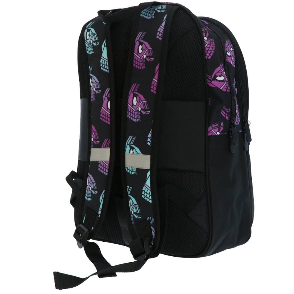 With its design inspired by the famous video game Fortnite, this Fortnite Lama 41 cm backpack will be a hit with young fans of the gaming universe. Adorned with colorful patterns representing the famous multicolored loot llama, this bag stands out for its bold and cheerful style. The black background highlights the illustrations in shades of purple, turquoise, and blue, for an effect that is both trendy and playful. Designed to accompany children in their daily lives, whether at school, on outings, or traveling, this backpack perfectly combines practicality, durability, and aesthetics.