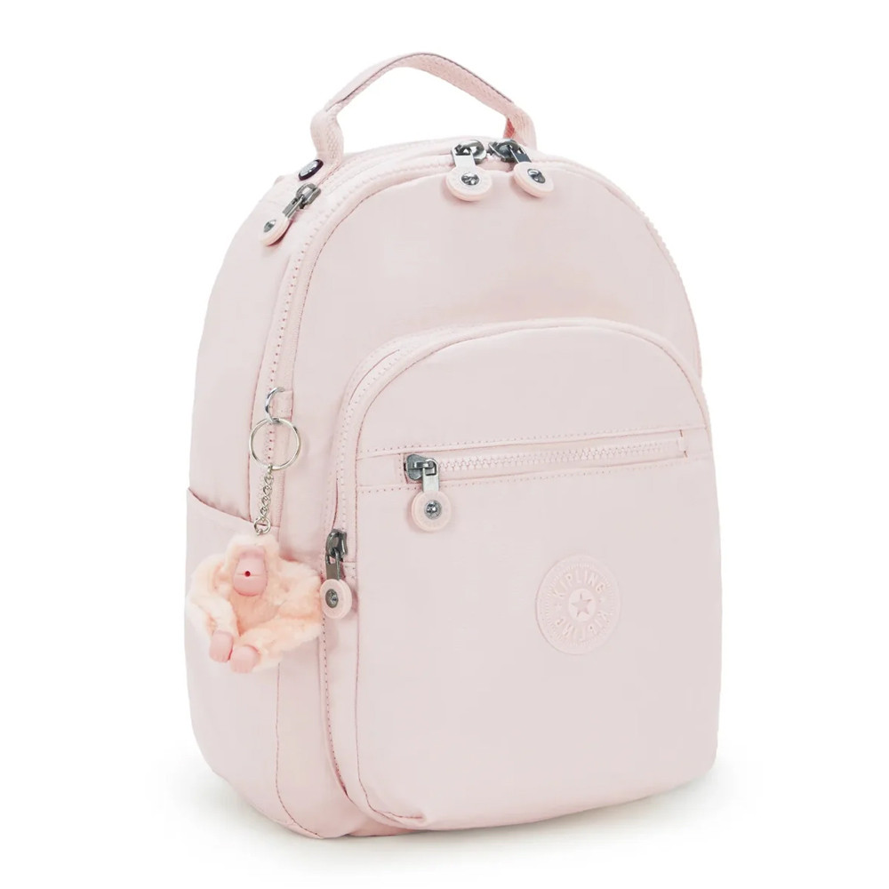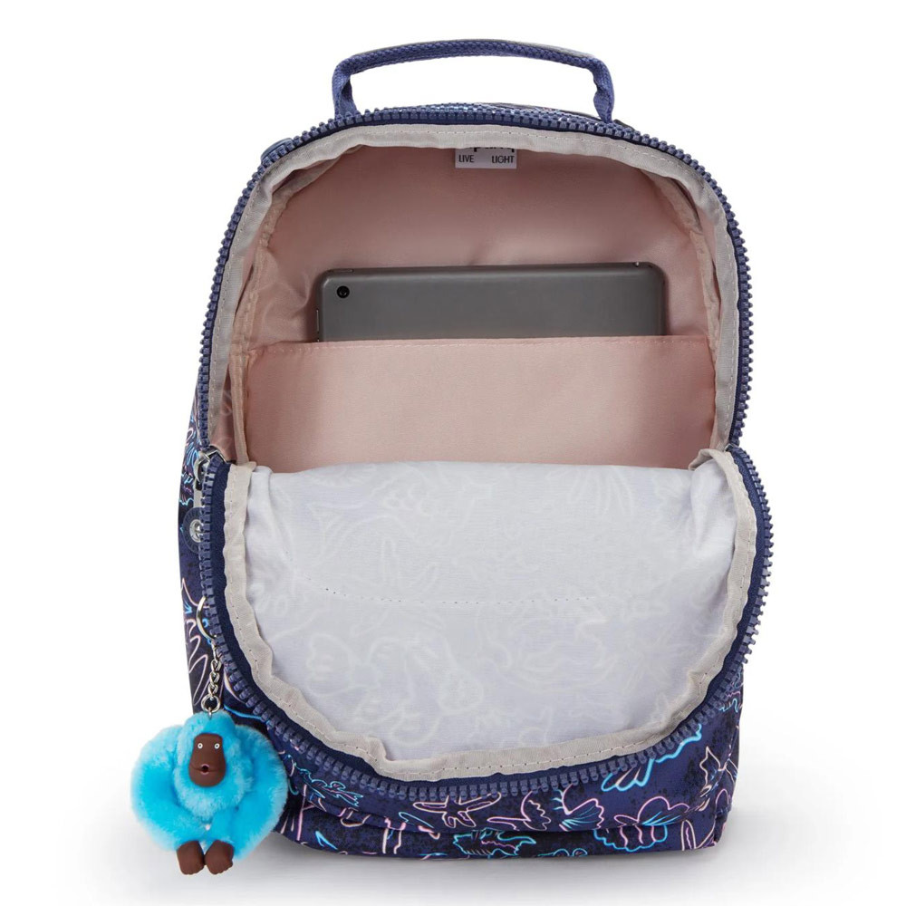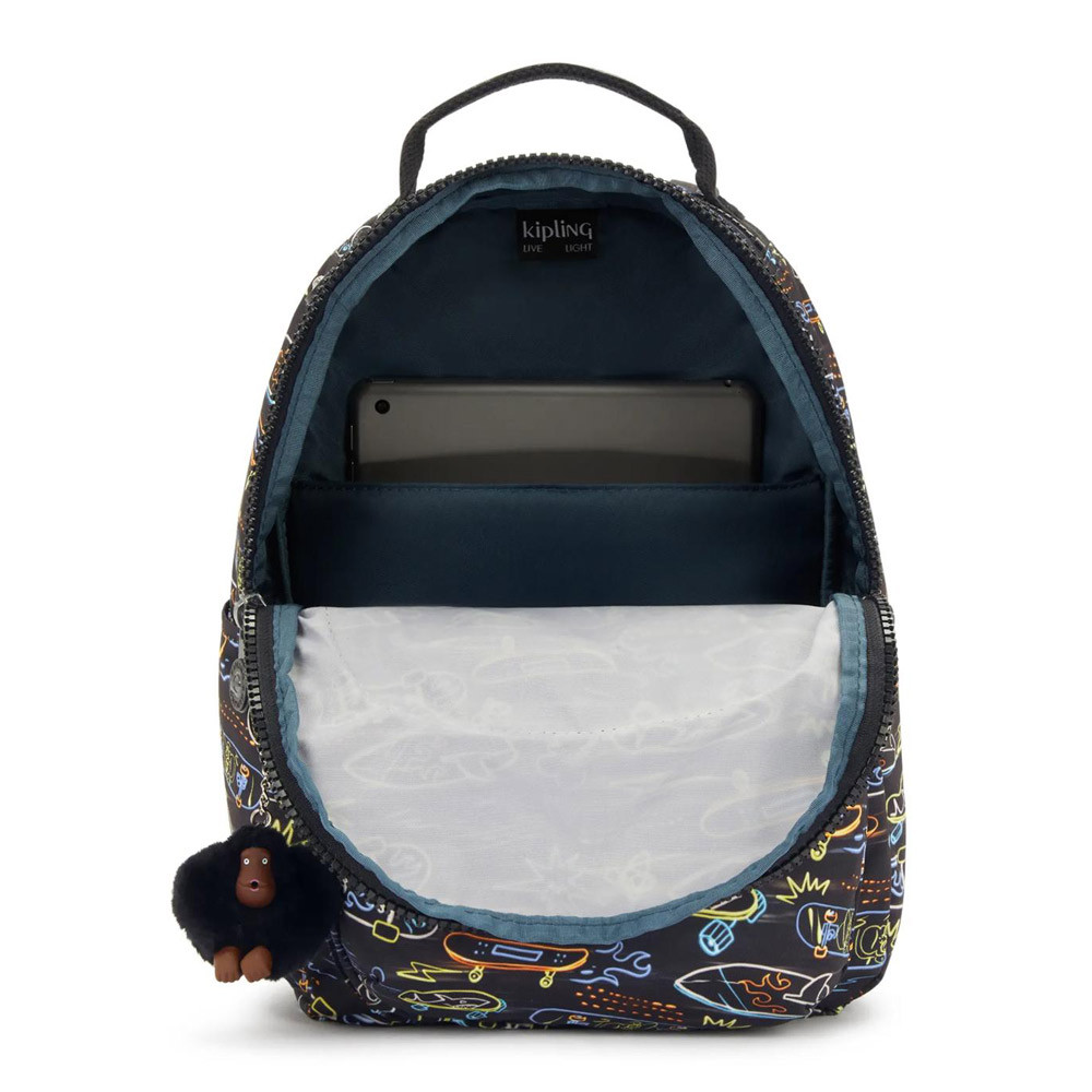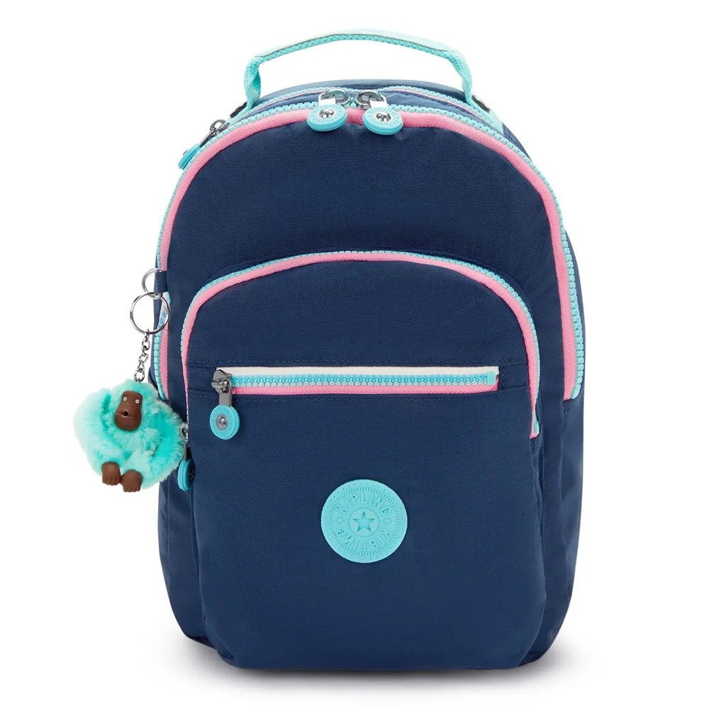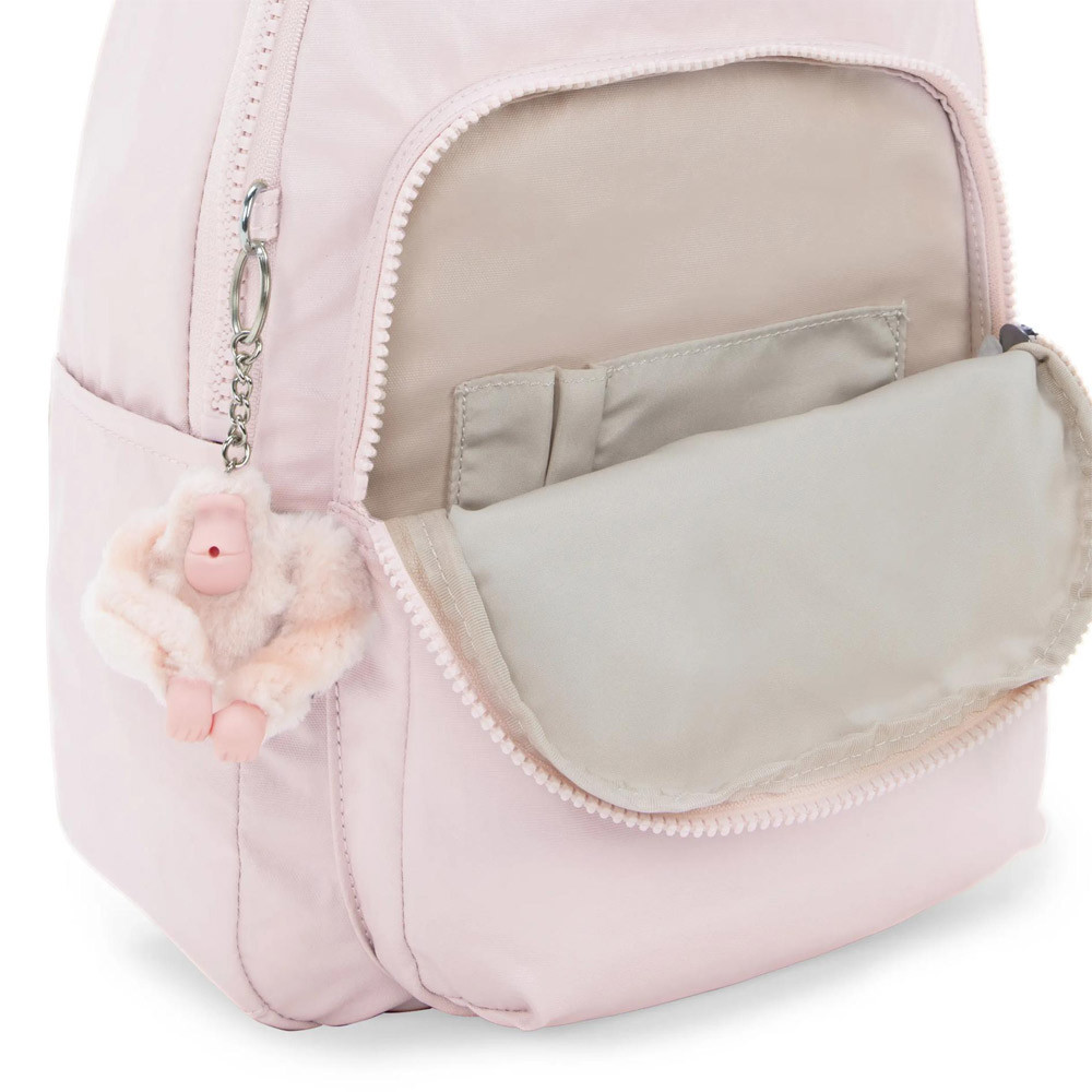 Several zippered compartments make up the Kipling Seoul S backpack. The central compartment is obviously the most spacious. It includes many functional spaces such as a pen holder, a phone pocket or a place for a tablet. The front of the luggage has two zipped pockets ideal for storing books or papers, for example.