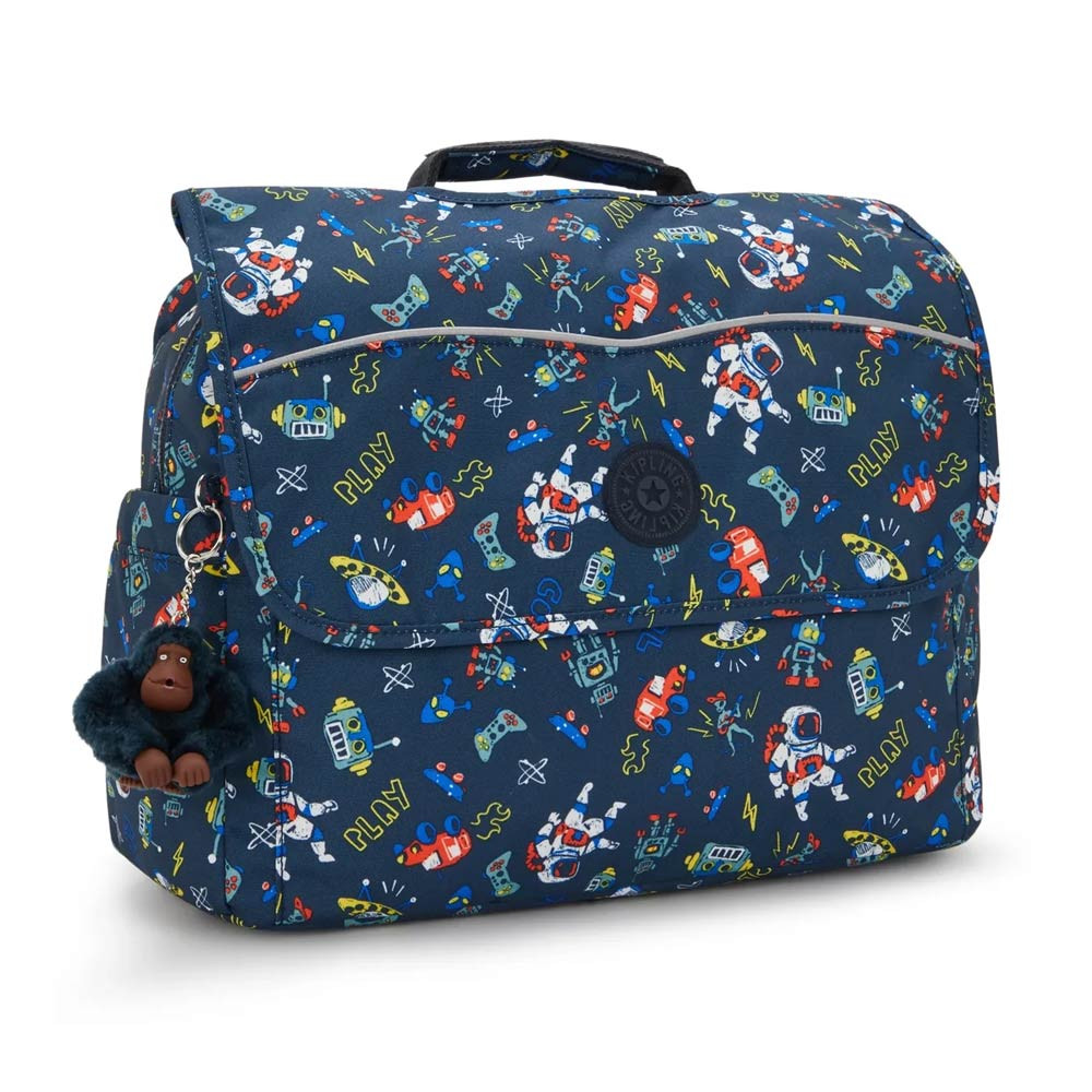 The round Kipling logo and the iconic monkey keychain add a playful touch that children love, while reassuring parents about the product's quality.
