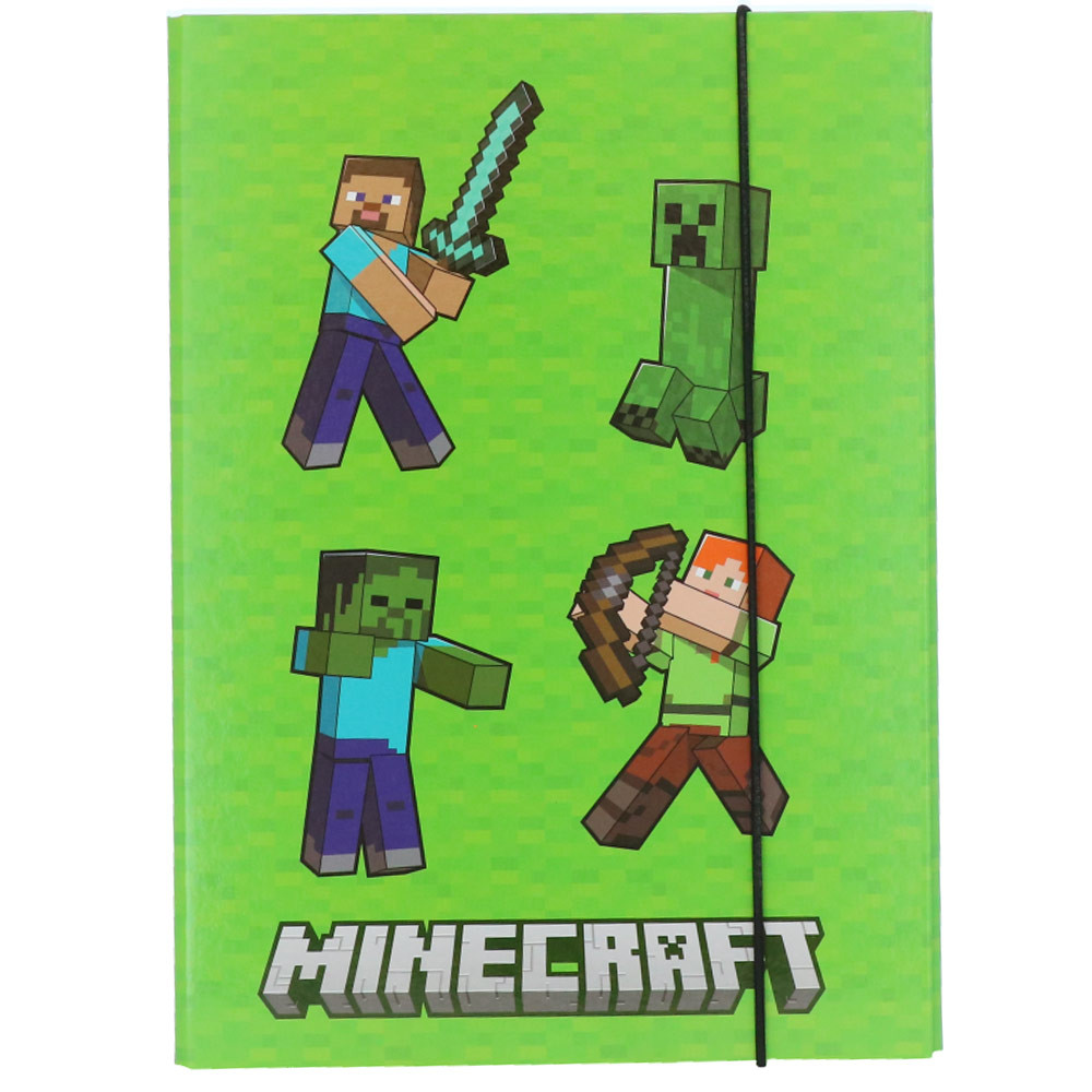 Dive into the cubic universe of your favorite game with this A4 filing box Minecraft, the essential accessory for all young paper explorers and organization masters! Featuring a pixelated green background typical of the game and decorated with iconic characters like Steve, Alex, a Creeper, and a Zombie, this box turns every homework session into a fun-filled adventure.