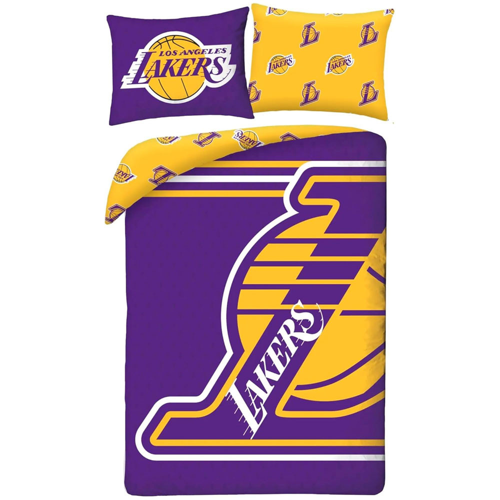 Immerse yourself in the mythical world of the NBA with this bedding set in the official colors of the Los Angeles Lakers. Designed for true basketball enthusiasts, it brings a sporty and dynamic touch to your child or teenager's room. On a bright yellow background bordered by purple, the duvet cover highlights the famous logo of the Californian team, a symbol of victories and legend. Every night becomes a unique moment to dream of decisive baskets and unforgettable games.