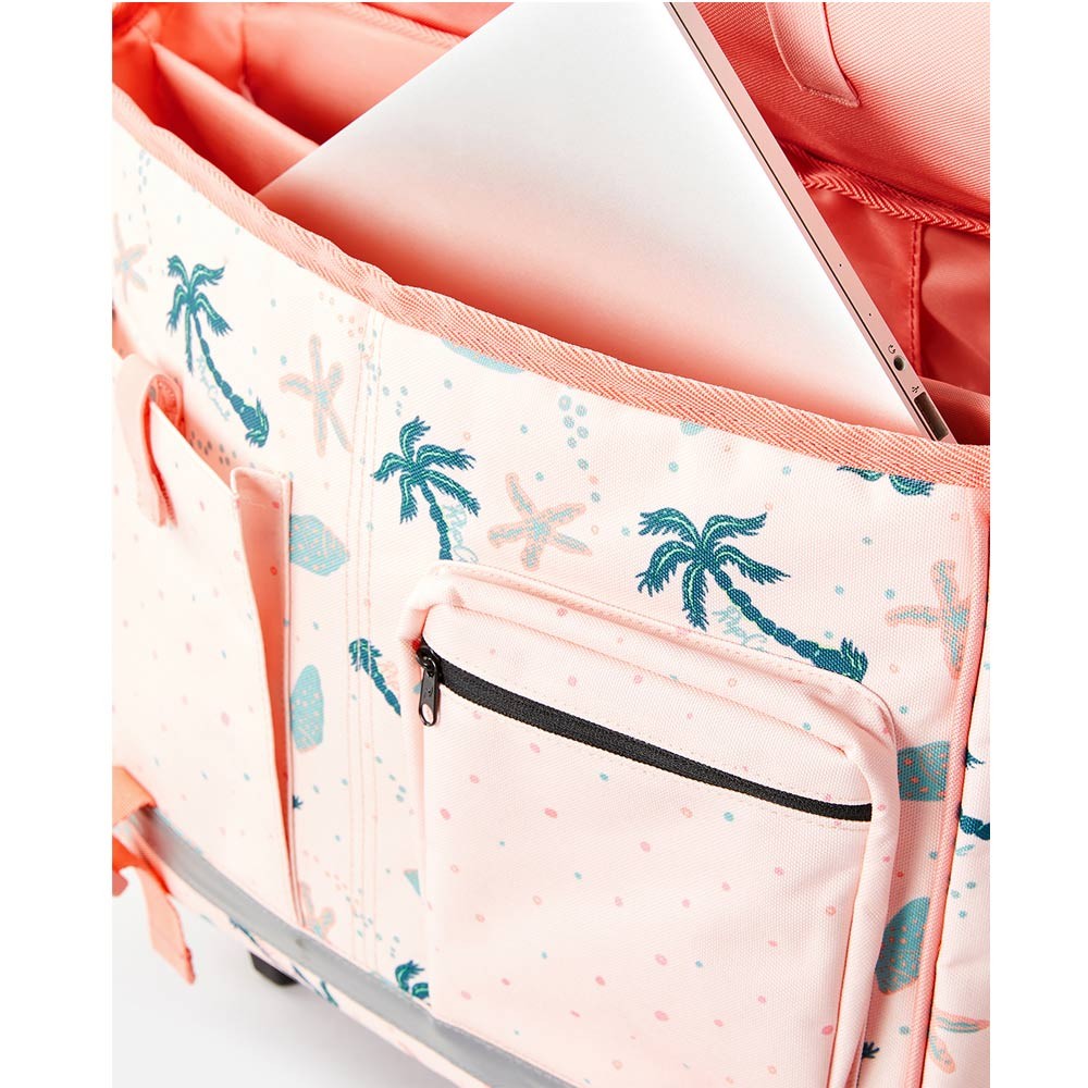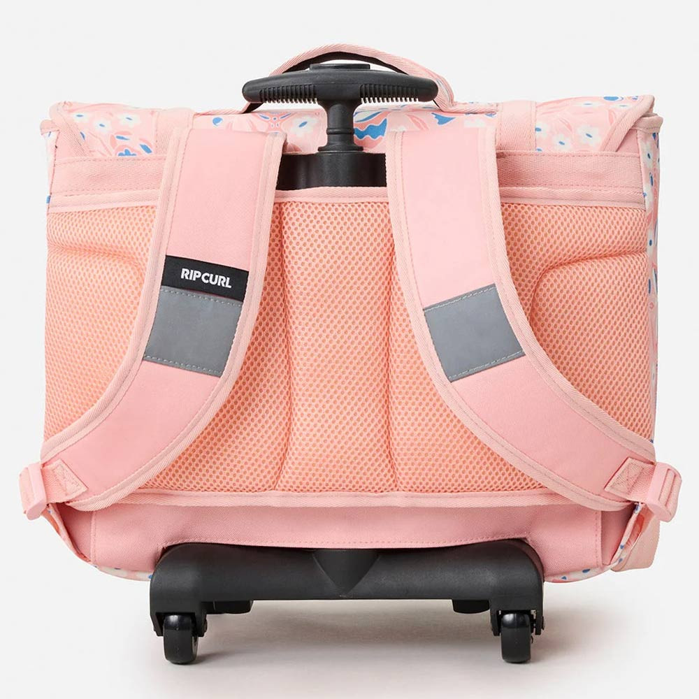 The 38 CM Rip Curl Rolling Backpack is specially designed for young primary school girls, from first to third grade. Thanks to its integrated trolley system, it allows for transporting school supplies without carrying all the weight on the back, while maintaining the option of wearing it on the shoulders when necessary.