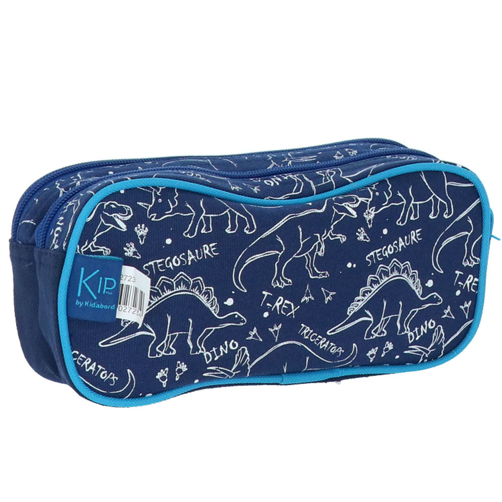 With the rectangular Kip Dinosaure 22 CM pencil case, little enthusiasts of prehistoric creatures finally have their favorite accessory for school! This pencil case with a deep blue design, enhanced with an embroidered turquoise triceratops, combines originality, practicality, and durability to make each day an adventure full of discoveries. It will appeal to both little dreamers and future explorers of the school jungle.