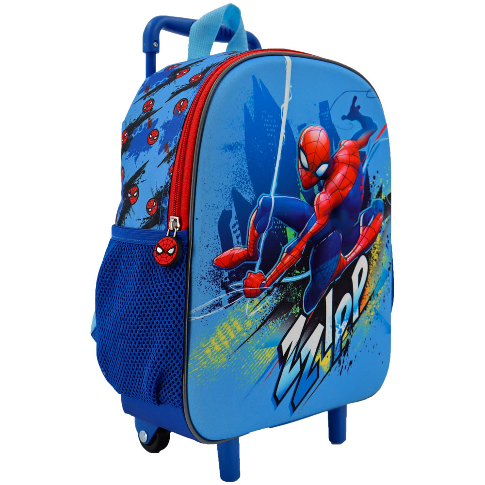 The adjustable and padded shoulder straps also ensure comfortable carrying when worn on the back, offering dual functionality according to needs. The zippers feature ergonomic sliders for easy opening, even for small hands. This Spiderman rolling backpack combines playful design, premium quality, and practicality to accompany children in all their school or personal adventures.