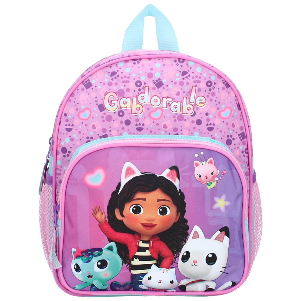 Sumérgete en el mundo de cuento de hadas de Gabby y la Casa Mágica Con este Mochila Gabdorable de 29 cm ! Diseñado especialmente para niños en jardín de infantes, combina Practicidad, comodidad y un diseño colorido que hará las delicias de los jóvenes fans de la serie. Con sus tonos pastel y sus divertidos estampados, este bolso es perfecto para llevar a tu hijo a la escuela, a la guardería o de excursión.