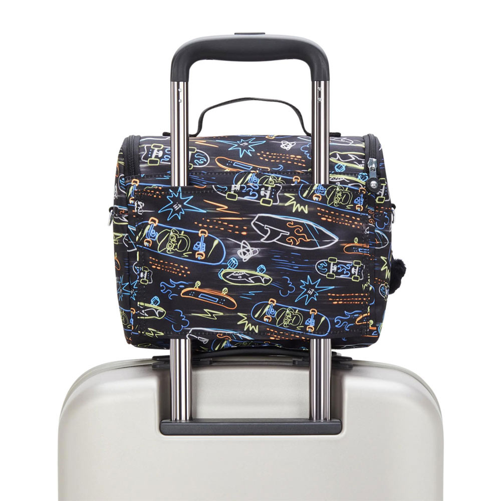 La innovación de Kipling radica en la amplia tira de tela en la parte posterior de la bolsa de almuerzo New Kichirou. Este dispositivo permite enhebrar la bolsa a lo largo de un asa telescópica -la de una mochila escolar o una maleta- y así moverse con facilidad y ligereza sin riesgo de pérdidas.