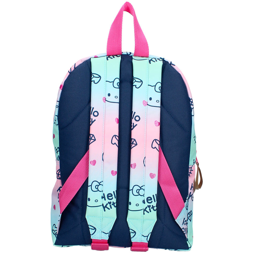 Esta mochila Hello Kitty Cheerful es el compañero soñado para los pequeños fans del famoso personaje japonés. Pensada especialmente para los niños en preescolar, combina dulzura, practicidad y estilo gracias a su diseño pastel delicado, degradado de rosa y azul turquesa, adornado con motivos de Hello Kitty, corazones y accesorios femeninos. Su paleta de colores tiernos y alegres la convierte en un accesorio tan lindo como atractivo, perfecto para alegrar los días de colegio.