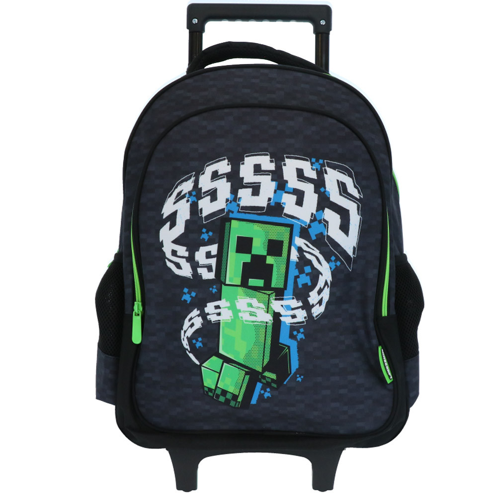 Prepárate para causar sensación en el patio de recreo con esta mochila con ruedas Minecraft Creeper de 42 cm, un accesorio tan práctico como espectacular para los jóvenes fanáticos del famoso videojuego. Con su diseño pixelado fiel al universo de Minecraft y el icónico Creeper en primer plano, esta mochila combina perfectamente estilo, robustez y comodidad. Los efectos visuales dinámicos y los toques de verde fluorescente sobre fondo negro evocan la atmósfera del juego al tiempo que aportan un toque de modernidad.