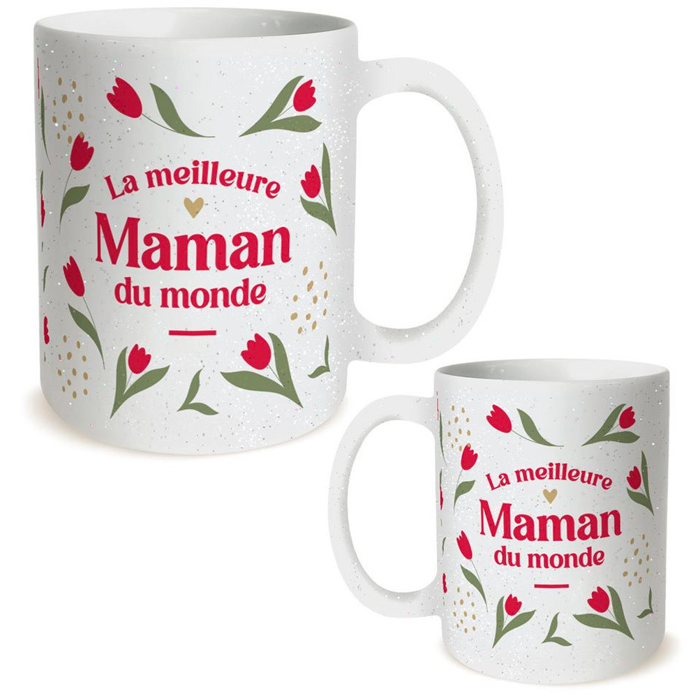 Con su diseño moderno y colorido, esta taza de cerámica resistente muestra orgullosamente el mensaje: "La taza de la súper compañera", en letras alegres y llenas de energía. El fondo blanco está sutilmente adornado con brillantina reluciente que atrapa la luz y atrae las miradas en el escritorio o en la sala de descanso. El texto, impreso en ambas caras, es perfectamente legible, sin importar la mano que sostenga la taza.