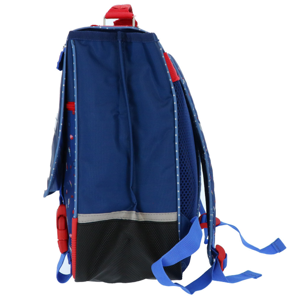 Son format généreux de 38 cm de largeur permet d'accueillir facilement tous les essentiels de la journée : cahiers, classeurs A4, livres, trousse et agenda. Grâce à ses deux compartiments intérieurs, l’organisation est facilitée et les enfants peuvent séparer leurs affaires pour mieux s’y retrouver. Le cartable dispose également de poches latérales, idéales pour y glisser une gourde ou un petit goûter.