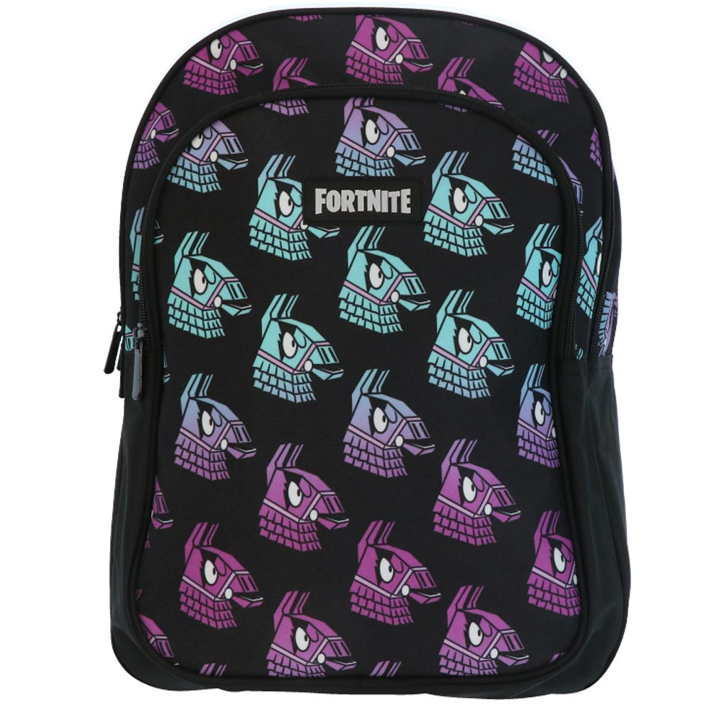 Avec son design inspiré du célèbre jeu vidéo Fortnite, ce sac à dos Fortnite Lama 41 cm fera sensation auprès des jeunes fans de l’univers gaming. Orné de motifs colorés représentant le célèbre lama butin multicolore, ce sac se distingue par son style audacieux et joyeux. Le fond noir met en valeur les illustrations dans les tons violet, turquoise et bleu, pour un effet à la fois tendance et ludique. Conçu pour accompagner les enfants au quotidien, que ce soit à l’école, en sortie ou en voyage, ce sac à dos combine parfaitement praticité, résistance et esthétique.