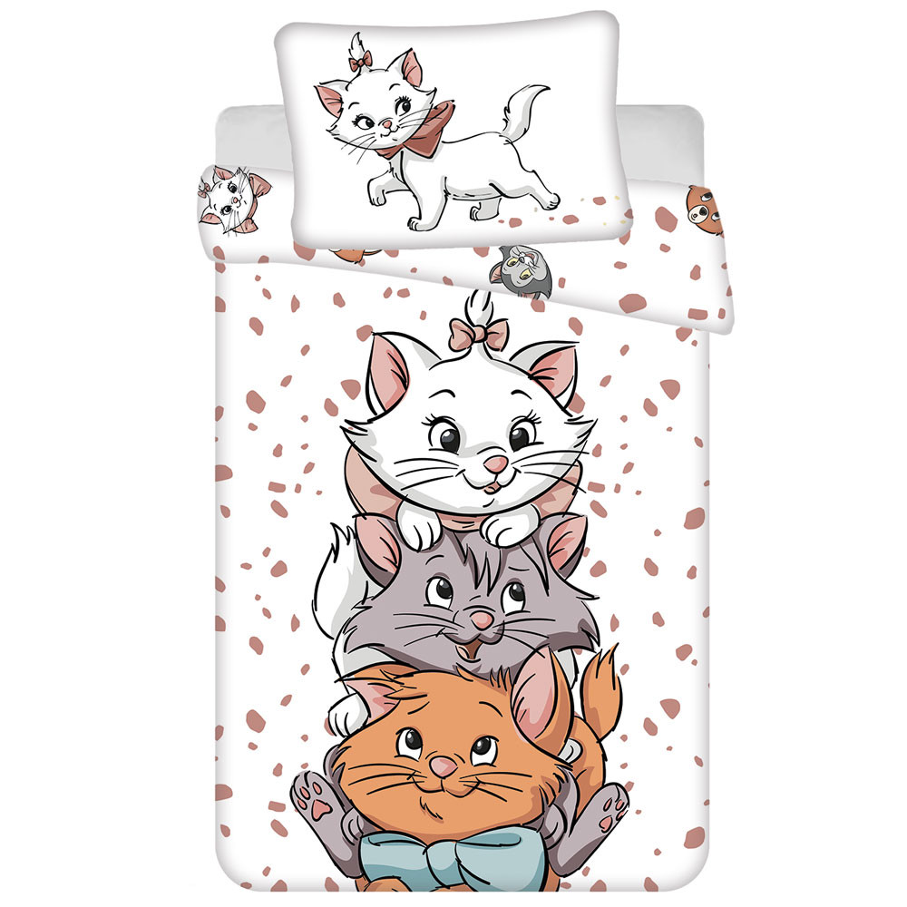 Plongez votre enfant dans un univers doux et élégant avec cette parure de lit en coton à l’effigie de Marie, la célèbre petite chatte blanche des Aristochats. Conçue spécialement pour les tout-petits, cette parure de lit comprend une housse de couette de 100 x 135 cm et une taie d’oreiller assortie de 40 x 60 cm, parfaitement adaptées à un lit de bébé.