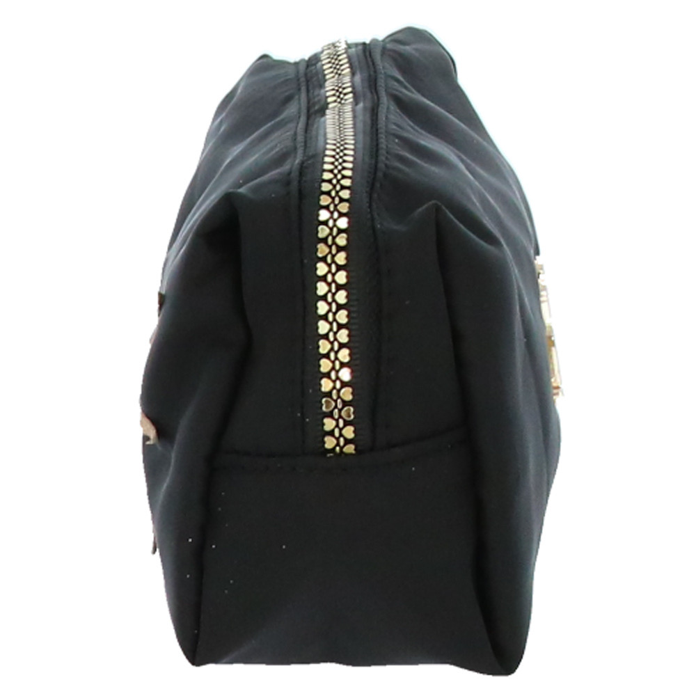 Son design noir élégant est rehaussé d’un motif doré scintillant en forme de visage de chat, avec moustaches et petit nez triangulaire, qui lui confère un style raffiné, tout en gardant une pointe de malice. La fermeture zippée robuste est non seulement résistante, mais décorée d’un charm en forme de cœur, ajoutant une touche féminine supplémentaire.