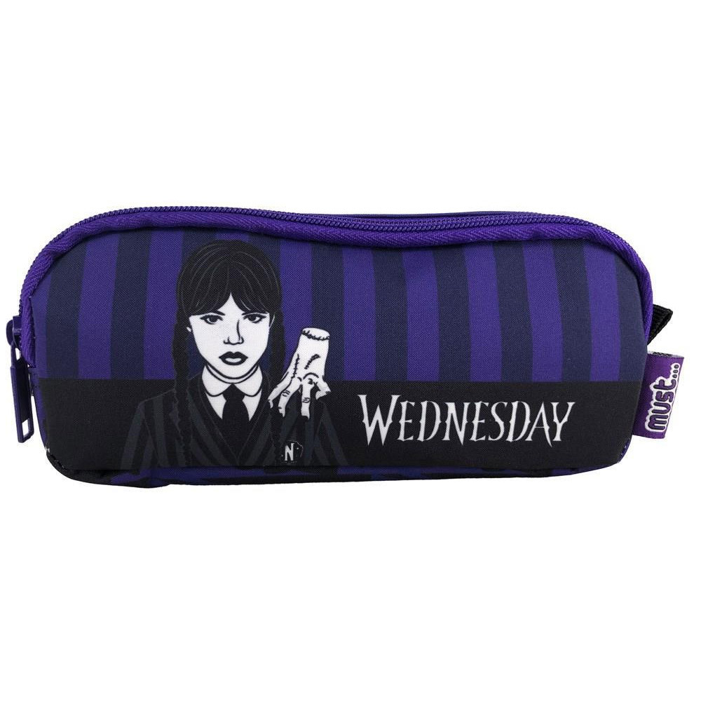 Misteriosa e audace, l'astuccio Mercredi Must è la scelta perfetta per bambini e adolescenti appassionati dell'universo oscuro e originale della celebre eroina della famiglia Addams. Con il suo formato rettangolare di 21 cm, unisce perfettamente stile e funzionalità per organizzare tutti i materiali scolastici. Il suo design a strisce viola e nere, arricchito dal ritratto emblematico di Wednesday accompagnata dalla celebre Cosa, attira immediatamente l'attenzione. L'iscrizione gotica "Wednesday" sottolinea l'identità affermata e l'atmosfera unica di questo astuccio fuori dal comune.