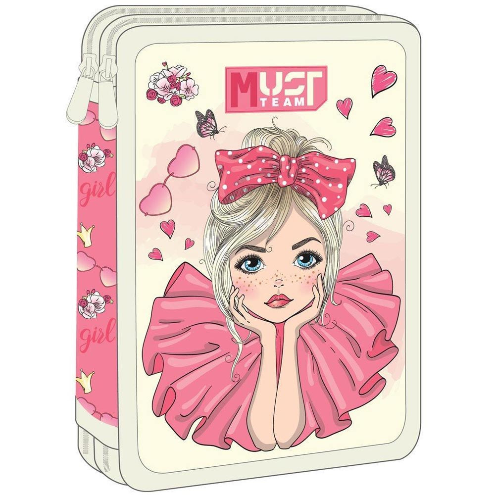 Il kit completo Papillon Pretty Must Team è un vero colpo di fulmine per accompagnare i bambini dai 6 anni nella loro quotidianità scolastica, con eleganza e organizzazione. Il suo design delicato e poetico presenta una graziosa illustrazione femminile con grandi occhi sognanti, circondata da cuori, farfalle e tonalità rosa cipria che evocano dolcezza, creatività e immaginazione. Un astuccio che piacerà immediatamente ai bambini che amano gli universi raffinati e pieni di fascino.