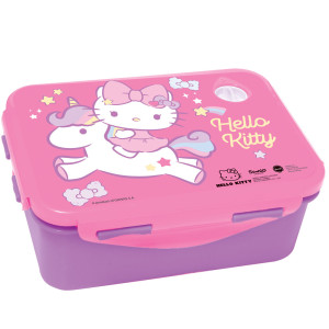 Hello Kitty, personaggio iconico dell'universo Sanrio, è qui abbinata a un unicorno per creare un mondo ancora più magico e ispiratore. Invita i bambini a sognare, immaginare e godere appieno di ogni momento. Con questa scatola per merenda Hello Kitty, ogni pausa diventa un momento incantato.