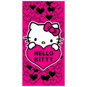 Voeg een vleugje zachtheid en fantasie toe aan ontspanningsmomenten met deze roze Hello Kitty badhanddoek, onder officiële licentie. Perfect geschikt voor kinderen, het trekt de aandacht met zijn schattige ontwerp dat de beroemde kleine witte kat toont in een wereld van roze en zwarte harten op een levendige achtergrond.