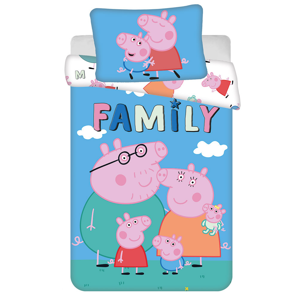 Breng een vleugje tederheid en goed humeur in de kamer van uw kind met deze Peppa Pig Familie katoenen beddengoedset, speciaal ontworpen voor de kleintjes. Het omvat een dekbedovertrek van 100 x 135 cm en een kussensloop van 40 x 60 cm, beide perfect geschikt voor een kinderbed. Dankzij het 100% katoen materiaal biedt deze set optimaal comfort en een zachte aanraking voor de delicate huid van kinderen.