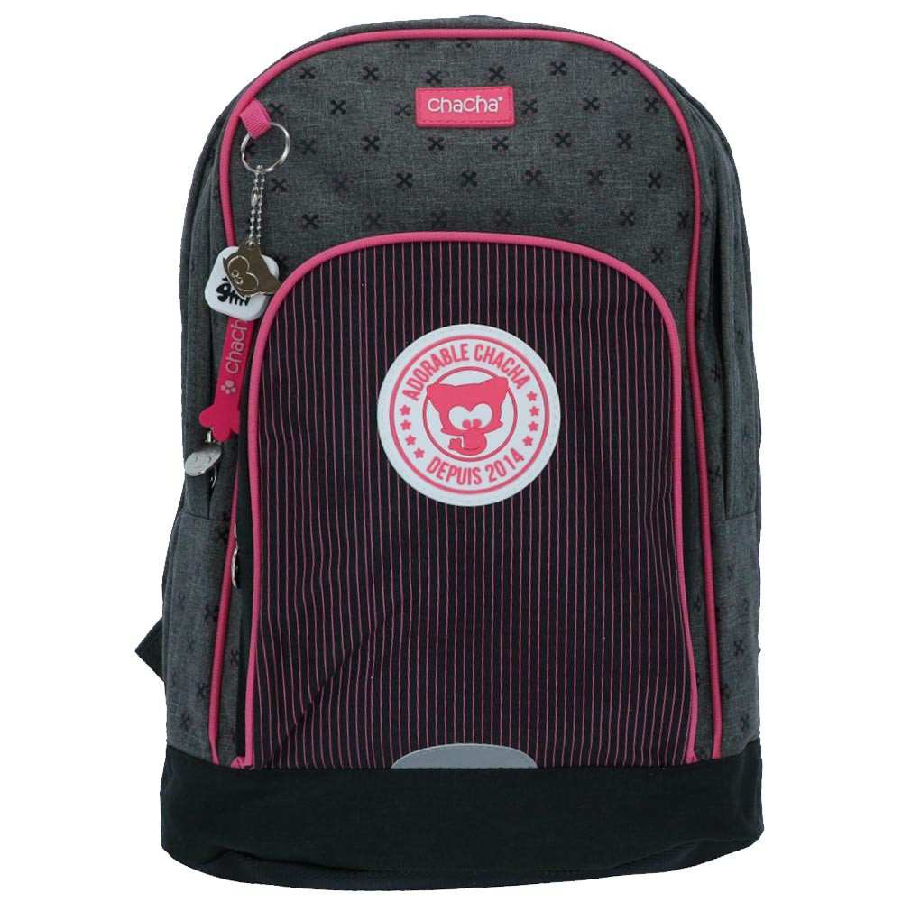 Schattig en functioneel, de Chacha Adorable 42 CM rugzak is perfect om kinderen te begeleiden bij al hun schoolavonturen. Met zijn verzorgde ontwerp dat gemêleerd grijs en fuchsia roze accenten combineert, trekt hij meteen de aandacht. Het logo "Adorable Chacha – Sinds 2014" op de voorzak voegt een vleugje tederheid en originaliteit toe, terwijl het een jonge en zelfverzekerde stijl uitstraalt. Deze tas is een mooie balans tussen een moderne look en een goed doordachte organisatie.
