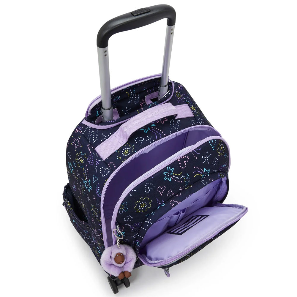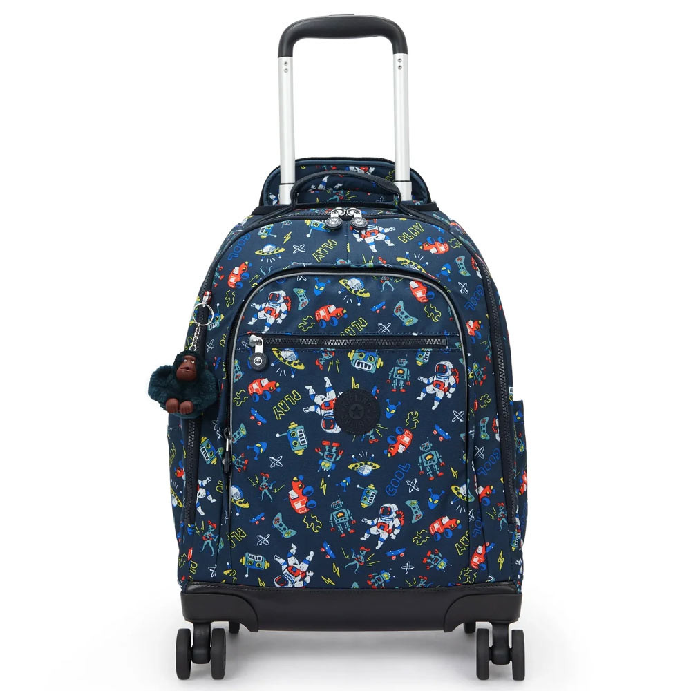 De rugzak met wielen Kipling NEW ZEA 50 CM is ontworpen om een bekend probleem voor ouders op te lossen: het gewicht van de schooltas. Dankzij het geïntegreerde trolleysysteem en de vier dubbele 360° draaibare wielen beweegt hij moeiteloos, zelfs als hij volgeladen is.