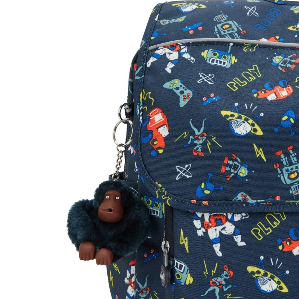 Het ronde Kipling logo en de iconische aap sleutelhanger voegen een speels tintje toe waar kinderen dol op zijn, terwijl ze ouders geruststellen over de kwaliteit van het product.