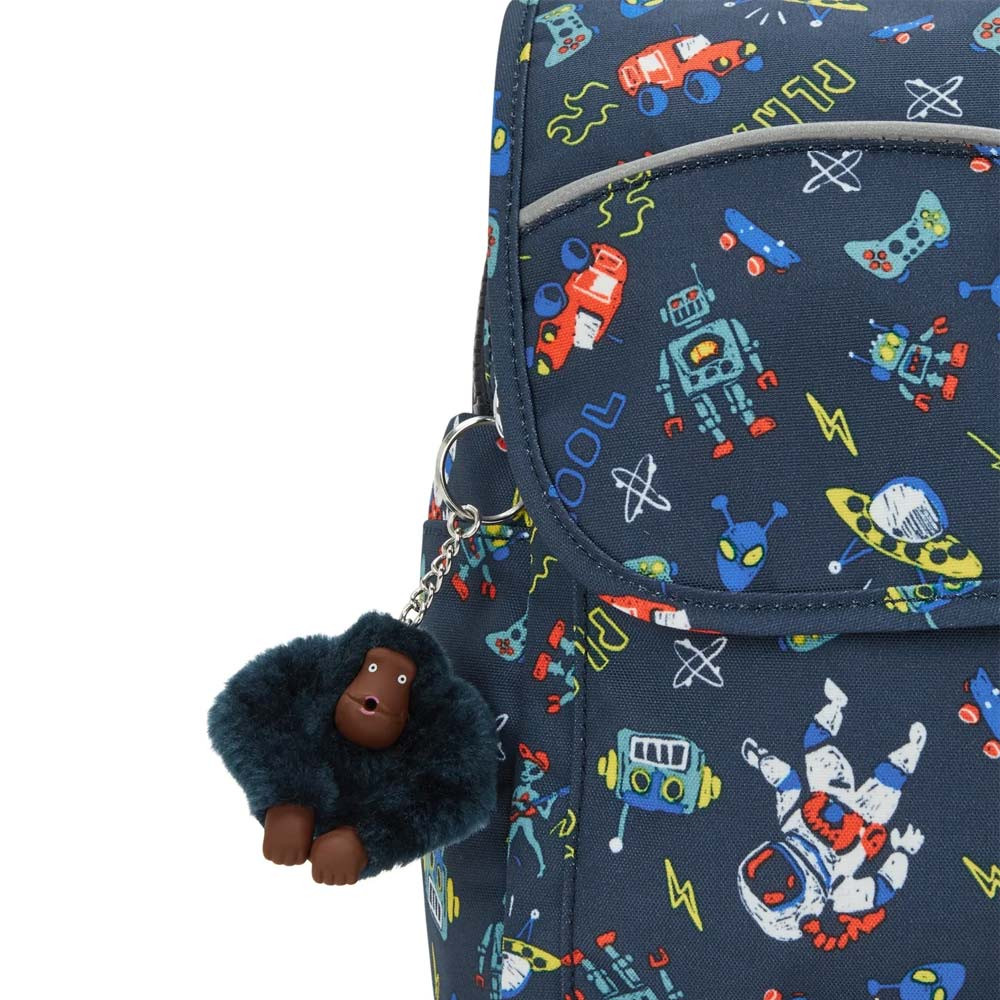 Het ronde Kipling logo en de iconische aap sleutelhanger voegen een speelse touch toe die kinderen geweldig vinden, terwijl ze ouders geruststellen over de kwaliteit van de rugzak.